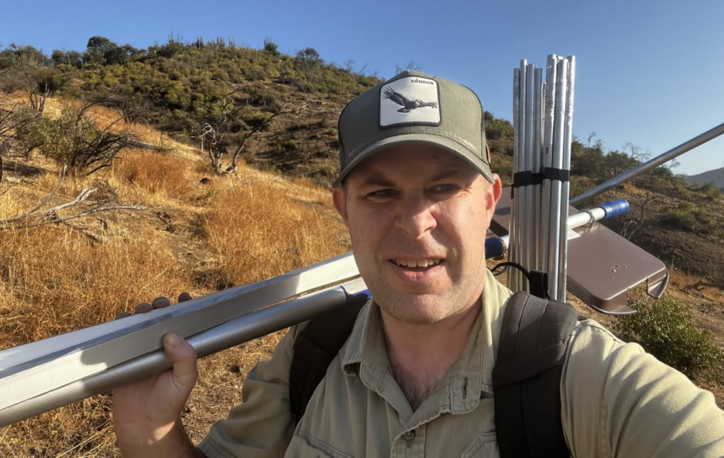 The other star of the story is the antenna: a 4-element OWA yagi Jason has been developing on and off for the last six months. Built with telescoping aluminum elements, it packs into a hiking bag apart from the pool-pole mast and the lightweight 13-foot boom, which breaks into two pieces. He hauled the whole rig up in one trip and set it up on a hillside about 325 feet up, with the antenna only 10โ12 feet above ground but benefiting from a steep drop-off toward the U.S.