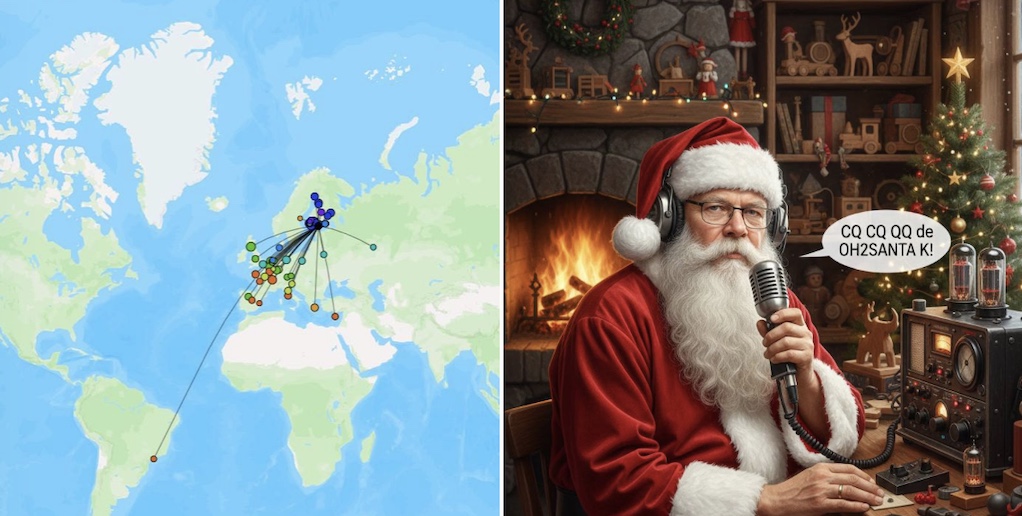 He began on 10m while there was still some propagation, then worked downward through the bands, finishing with a tidy report of 18 DXCC entities. Bonus seasonal snark: “Santa comes from Korvatunturi in Finland. All others are his deputies.” 🎅😆