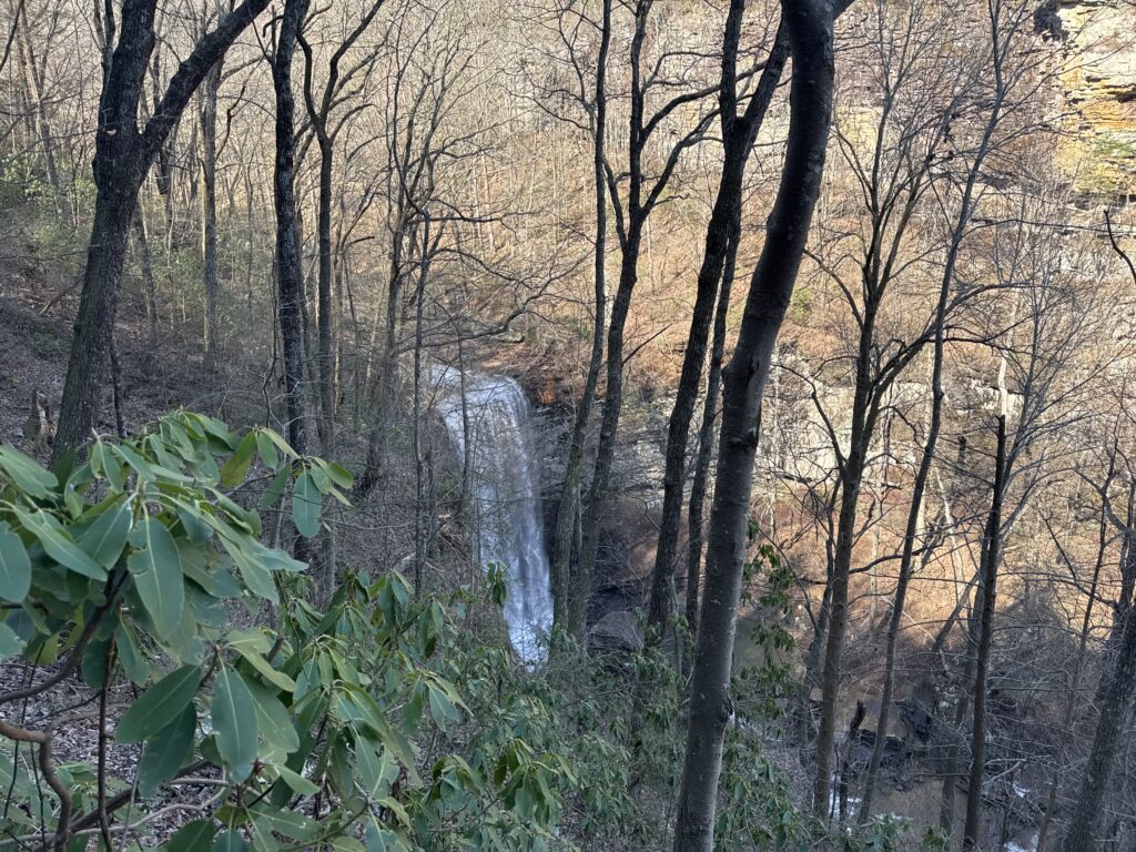 The easiest way to approach the trail is to start near the camp store and nature center in the main parking area. The major trails converge here, and so you can hop on to the West Rim Loop from here, just spend time viewing Cherokee and Hemlock Falls, or continue on to pick up Sitton’s Gulch. Since you are there already it would be silly to bypass the two large waterfalls! Here’s a view of Cherokee Falls from the top: