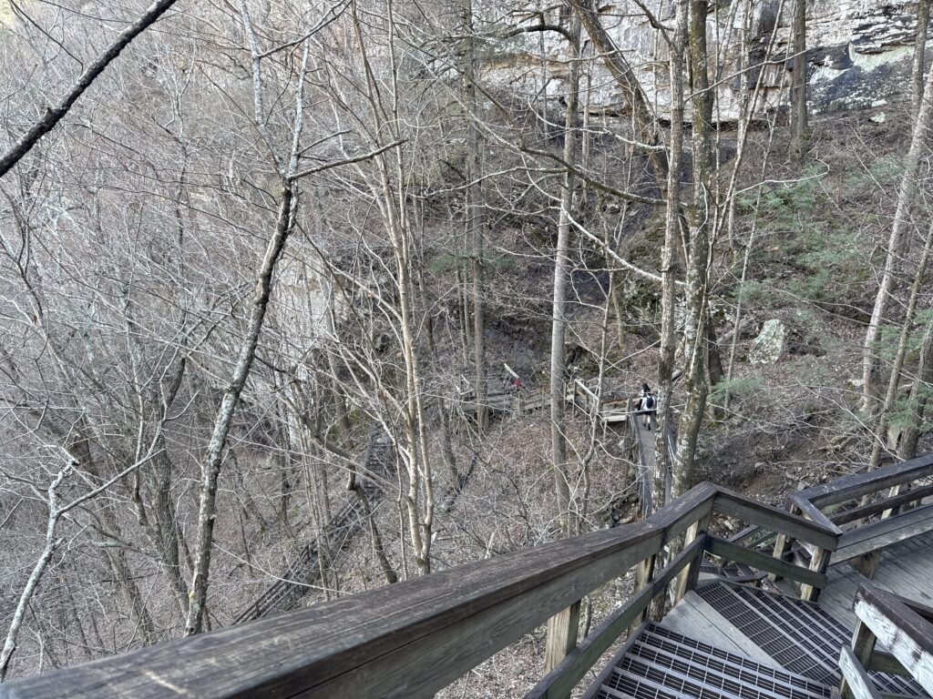 Going down isn’t terrible, but don’t forget that you’ll need to climb those stairs after the long walk down the trail and back!