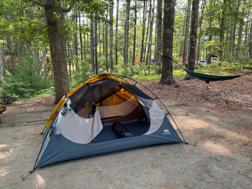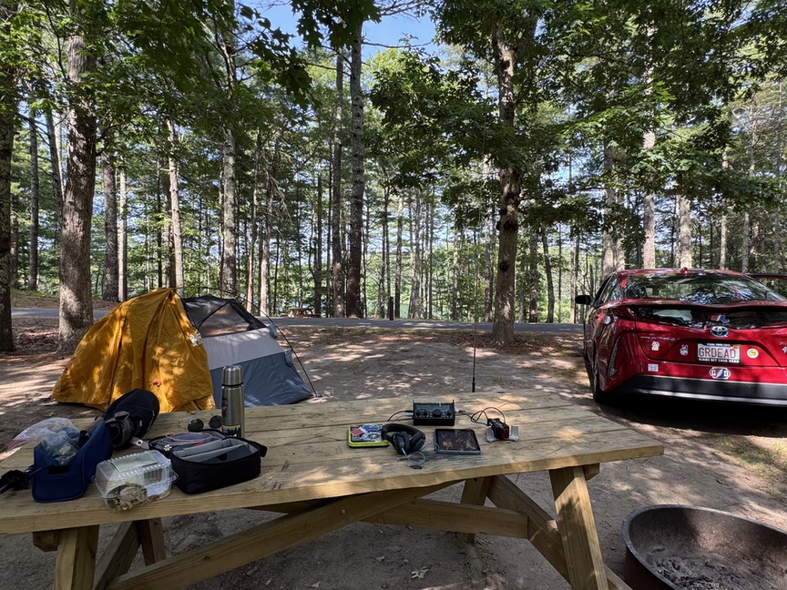 I hiked Nickerson in June and decided to come back a few weeks later to camp for a few days and get in some POTA activating. There are several designated camping areas in the park — I chose one on the banks of Higgin’s Pond in Area 7, pretty much as far away as you can get from anyone.