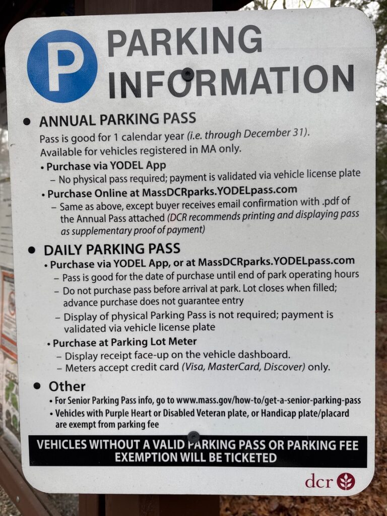 Since we’re thinking about parking, Massachusetts currently uses YODEL app for parking payments, though there usually is someone at the gate kiosk in case you don’t have the app. Something to keep in mind is that pre-paying for a spot doesn’t mean that there will actually be a spot when you get there. There’s plenty of overflow parking, though, so maybe only worry about that on peak summer weekends. Quite a few of the parking lots have picnic tables in the immediate area, and you’ll find a lot more scattered around the lake.