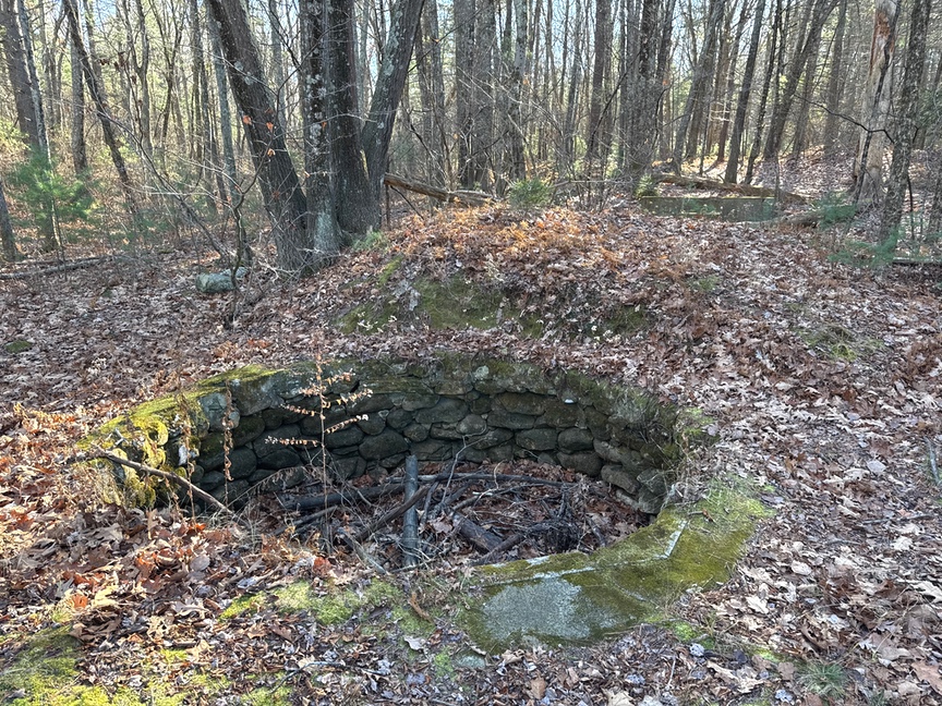 The Nipmuc used stone for both practical and ceremonial structures, and their work is visible just about everywhere in the park. The difficulty is that one rock looks just about like any other rock, and in an area like Upton that has seen constant occupation across thousands of years it can be very difficult to determine when a stone structure was erected or by whom. The Civilian Conservation Corps was very active in this area in the 1930s and you’ll see foundations, trails, stone walls, dams, and other artifacts from that time, like the water hole below. They planted hundreds of thousands of native trees and completed Dean Pond Dam, a major recreational facility.