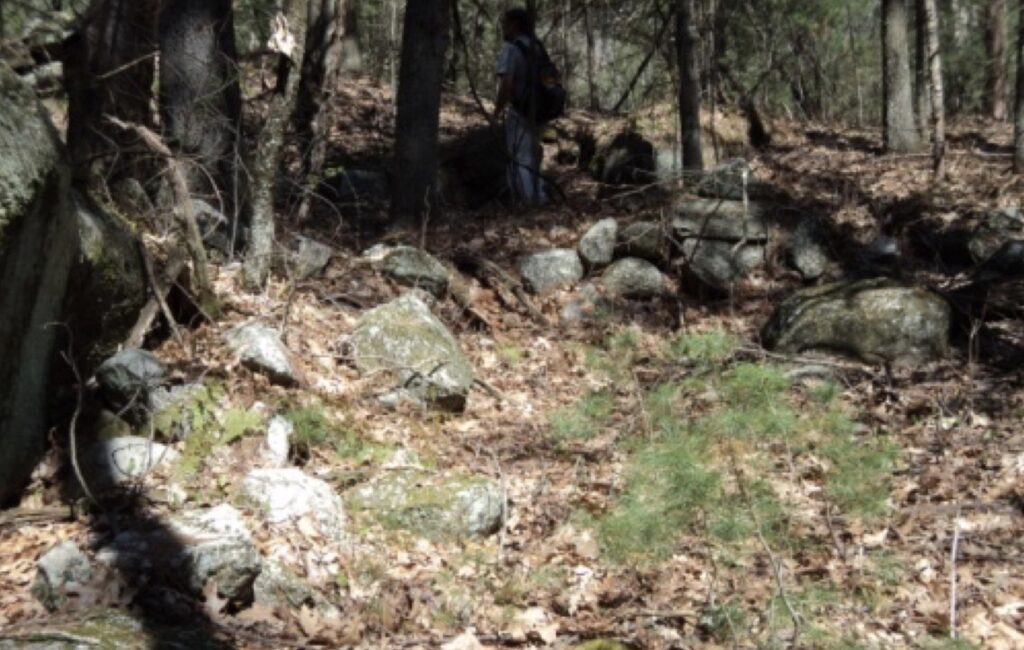 Some stone features are more puzzling, like sinuous short walls that don’t connect anything, or stacked or standing stones, or split boulders graced with quartz cobbles. Once in a while you’ll find a set of boulders arranged in what can only be an intentional way. I look at these through the same lens: What was the land used for? If the land isn’t good for agriculture, I can rule out structures that would be related for farming. I look for nearby resources like streams or ponds, and for geographically significant features like peaks or notches, and think about why someone would want to be here. To be honest, sometimes I can just feel that a site is old and important.
