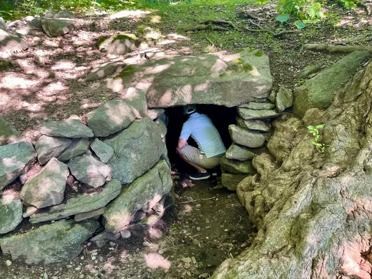 Not far from Pratt Pond and Pratt Hill is a bowl-shaped depression that features a stone chamber built into the hillside. It’s been there a long time and no one really knew what it was for. Most historians call it a root cellar built during colonial times. There are hundreds of similar chambers scattered around New England.