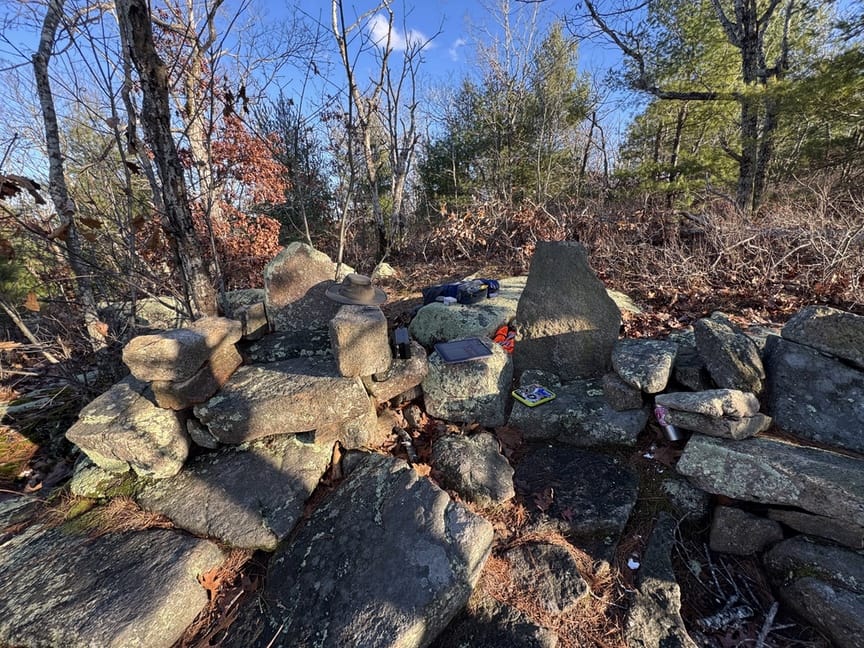 A lot of work had gone into this setup and it made me think that I should do something similar at my ‘home’ park, US-8383 Wrentham SF. I’m there a lot, usually in the same area near its summit, and I’ll make a chair and table out of stone to operate from in 2025.